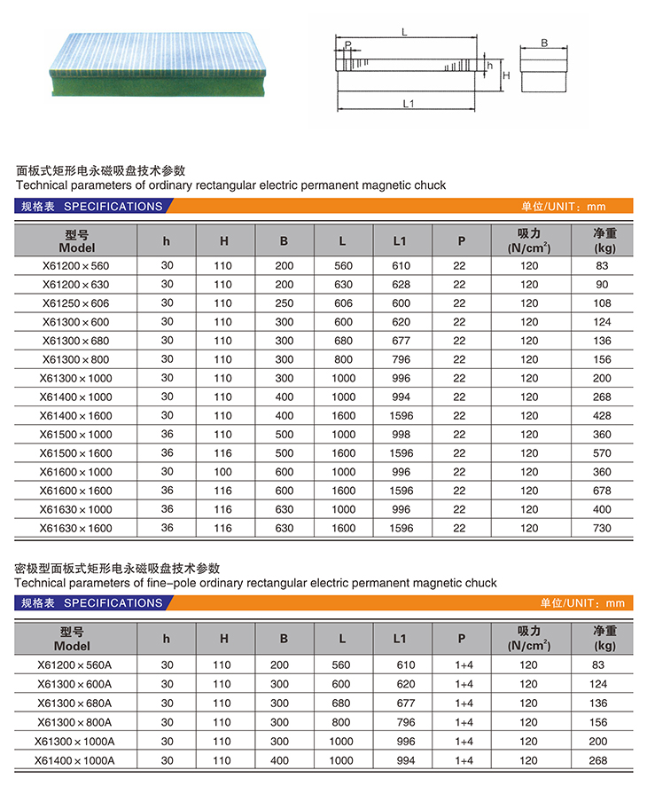 X61 面板式矩形電永磁吸盤