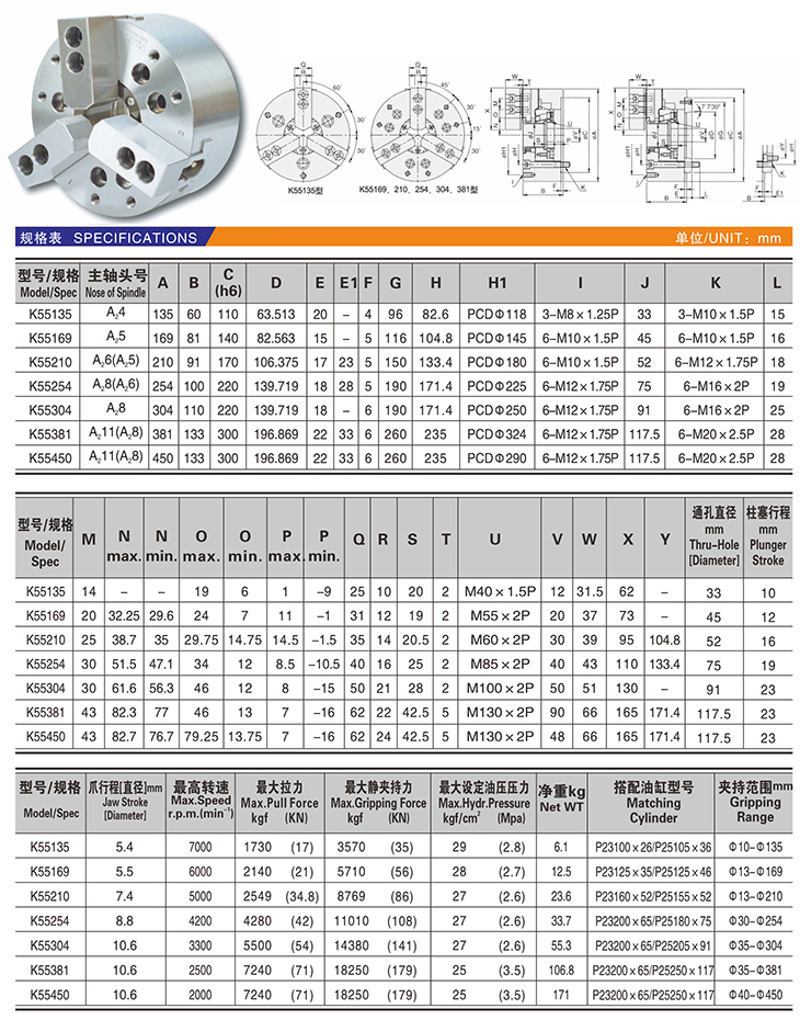K55 三爪高速中實動力卡盤